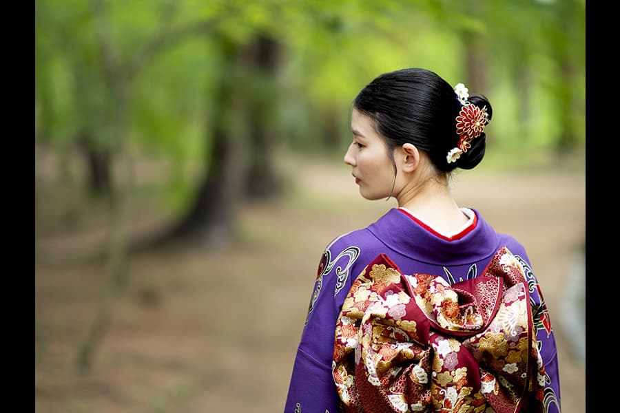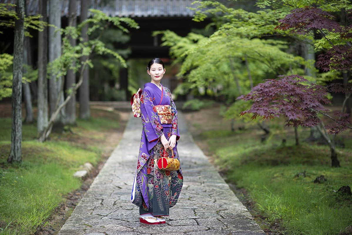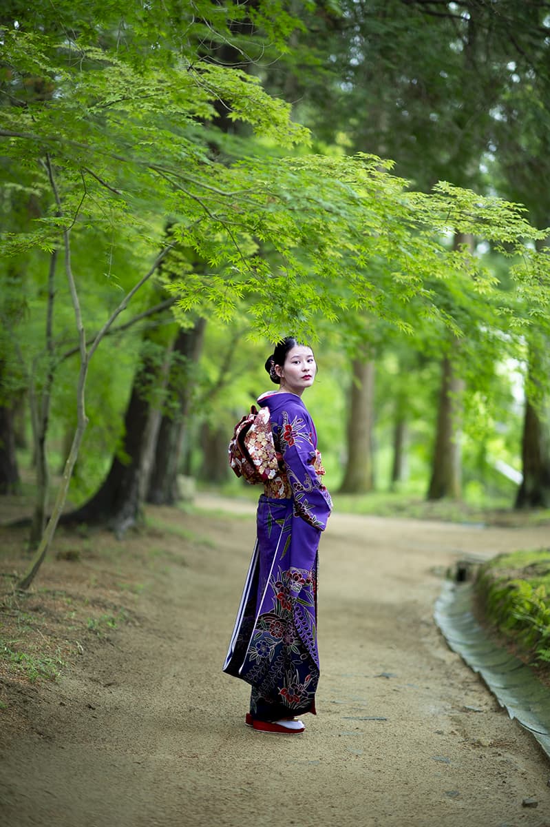 当店で着付・ヘアメイクをした場合、当店から曹源寺までマイカーなどで移動していただくこととなります。道路が空いていれば20分少々で到着できますが、混雑していると40分ほどかかる場合がございます。駐車場はそれほど広くありませんのでシーズン中の土日祝日は注意が必要です