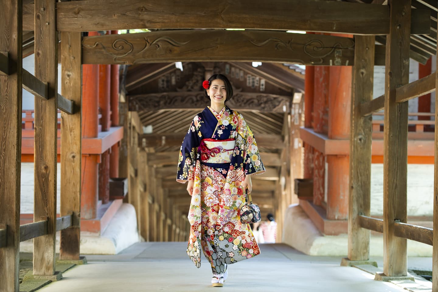おかま殿からスタートし、回廊を登りながら本殿を目指すコースになります。広大な敷地にさまざまな撮影スポットがあり、落ち着いて撮影できる場所だと思います。