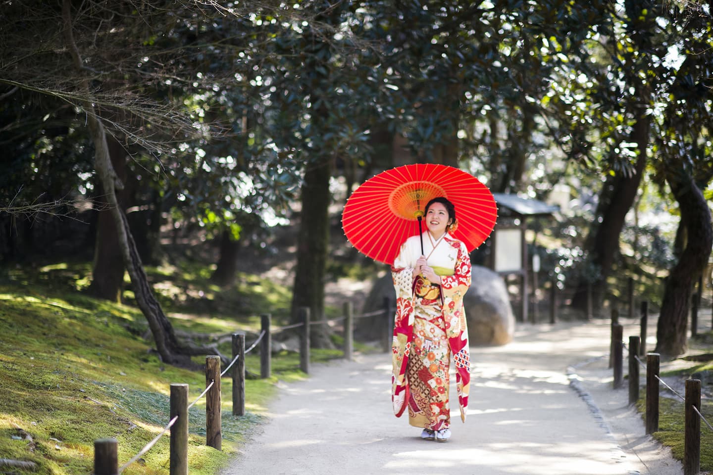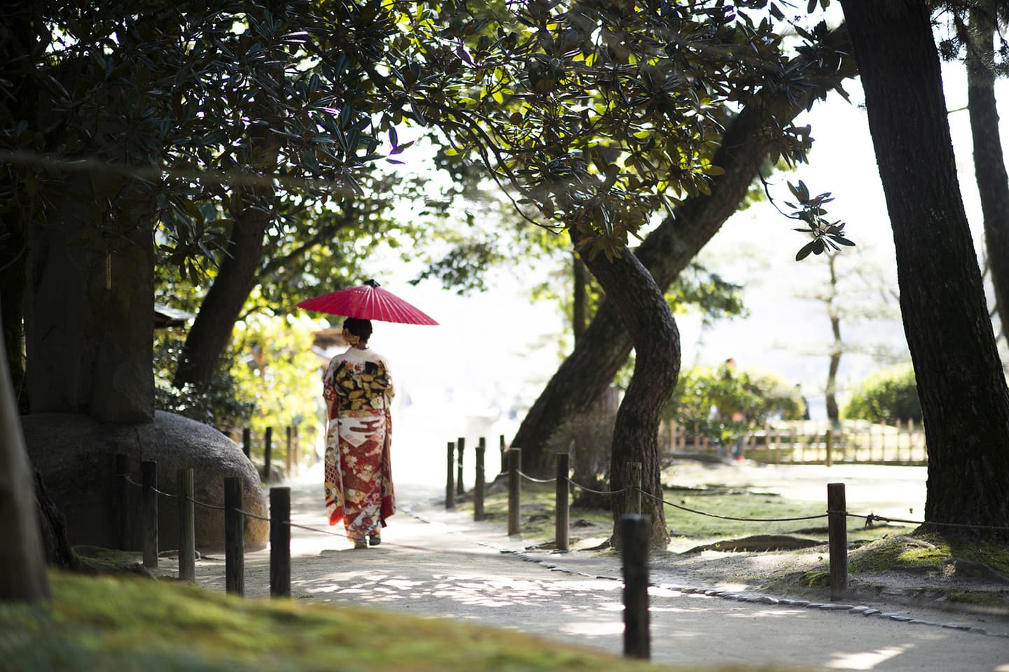 完全に整備された国内屈指の日本庭園、和装での撮影には最高のロケーション
