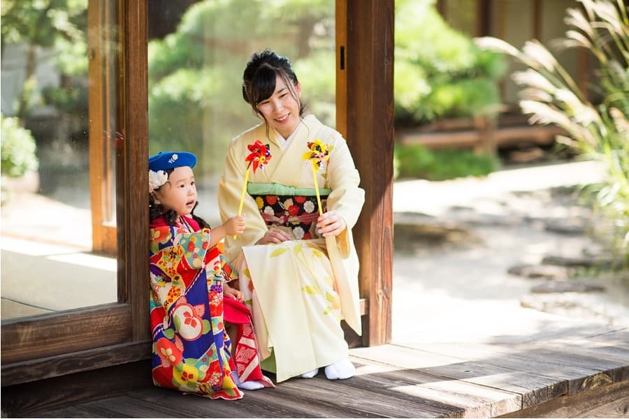 古民家での撮影になりますので、縁側で遊んだり、畳の部屋で家族写真を撮ったりするのがメインになります。後楽園や神社のように広大な背景はありませんが、細やかな部分も撮影できるので違った趣を楽しめます。